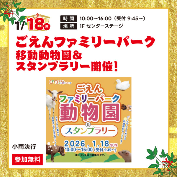 ごえんファミリーパーク移動動物園 & スタンプラリー開催!