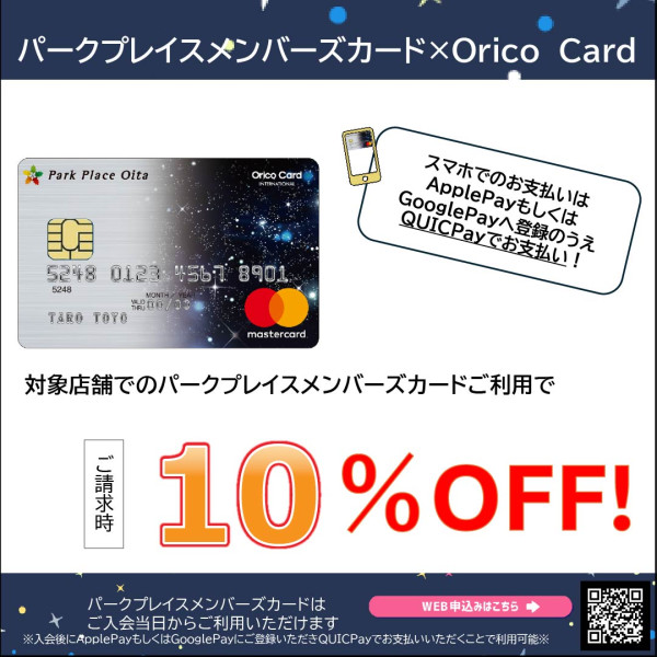 \【 パークプレイスメンバーズカード× Orico Card 】ご請求時10%OFFキャンペーン!/