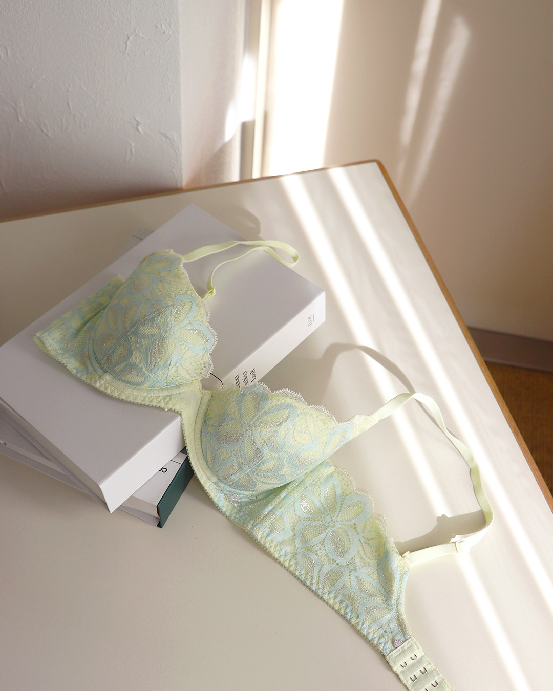 どこかレトロな雰囲気を醸し出した花のシルエットが愛らしいテイスト。ストラップ付け根にあしらったパワーネット素材のディテールがデザインにシャープな印象をプラスしています。