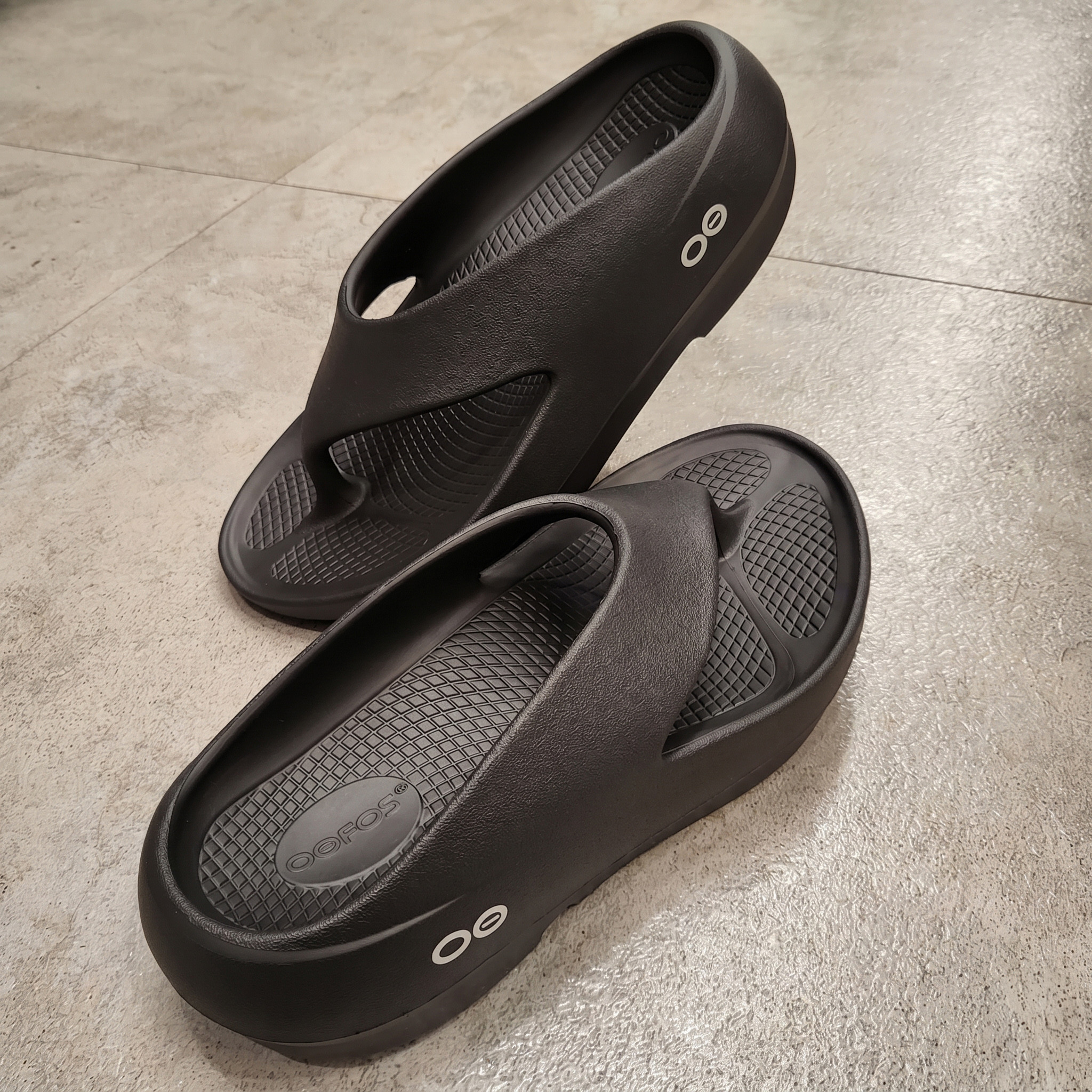 新商品が入荷いたしました☆【OOFOS】OORIGINAL+¥12,980-Color : BLACKSize :23.0/24.0/25.0/26.0/27.0/28.0リカバリーサンダルの王道【OOFOS】から最新作【OORIGINAL+】が登場しました!最大の進化はさらにボリュームアップした極厚ソール。従来のモデルよりクッション性が向上し、まるで雲の上を歩くような履き心地がさらに贅沢になりました。幅広のストラップが足をしっかりホールドするため、厚底ながら安定感も抜群です。ぜひ店頭でご体感くださいませ☺