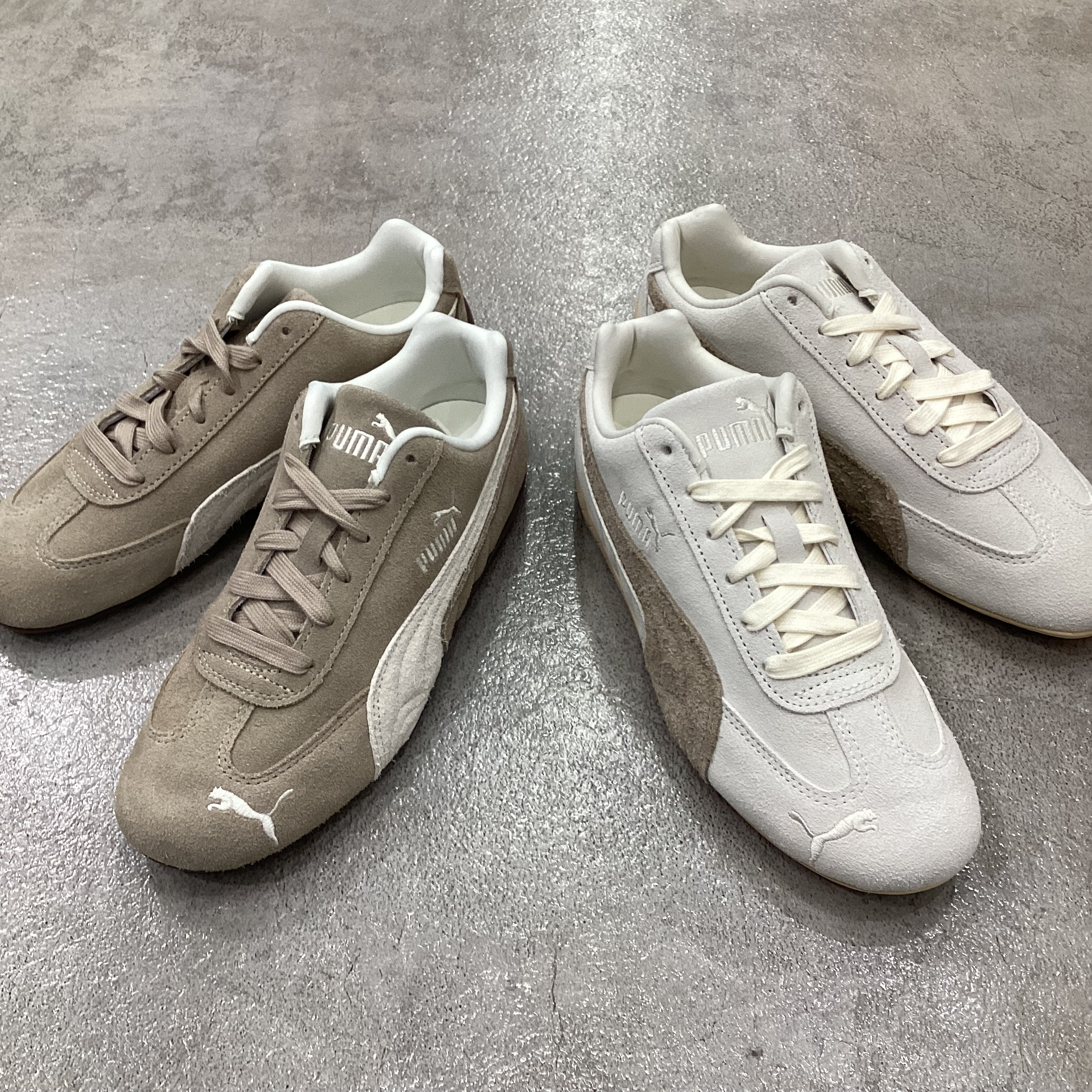 再入荷!!【PUMA】Speedcat OG¥14,300-Colour : Haute CoffeeSize : 23.0~25.0cm人気で完売が続くブラウンカラーが再登場です!ボリューム感のあるスニーカーが主流を占める現代において、クラシックなレーシングスタイルを纏ったSPEEDCATは、まるでカウンターカルチャーのような存在感。シンプルかつ洗練されたフォルムには、モータースポーツ由来の機能美と、ストリートで映えるエレガントなシルエットが特徴。スエードのブラウンが落ち着いた印象で、大人カジュアルにも馴染み、サイドの白ライン&つま先のPUMAロゴがアクセントになっていて、スポーティだけどレトロで上品なカラー。すべての服装にマッチします。皆様のご来店お待ちしております!