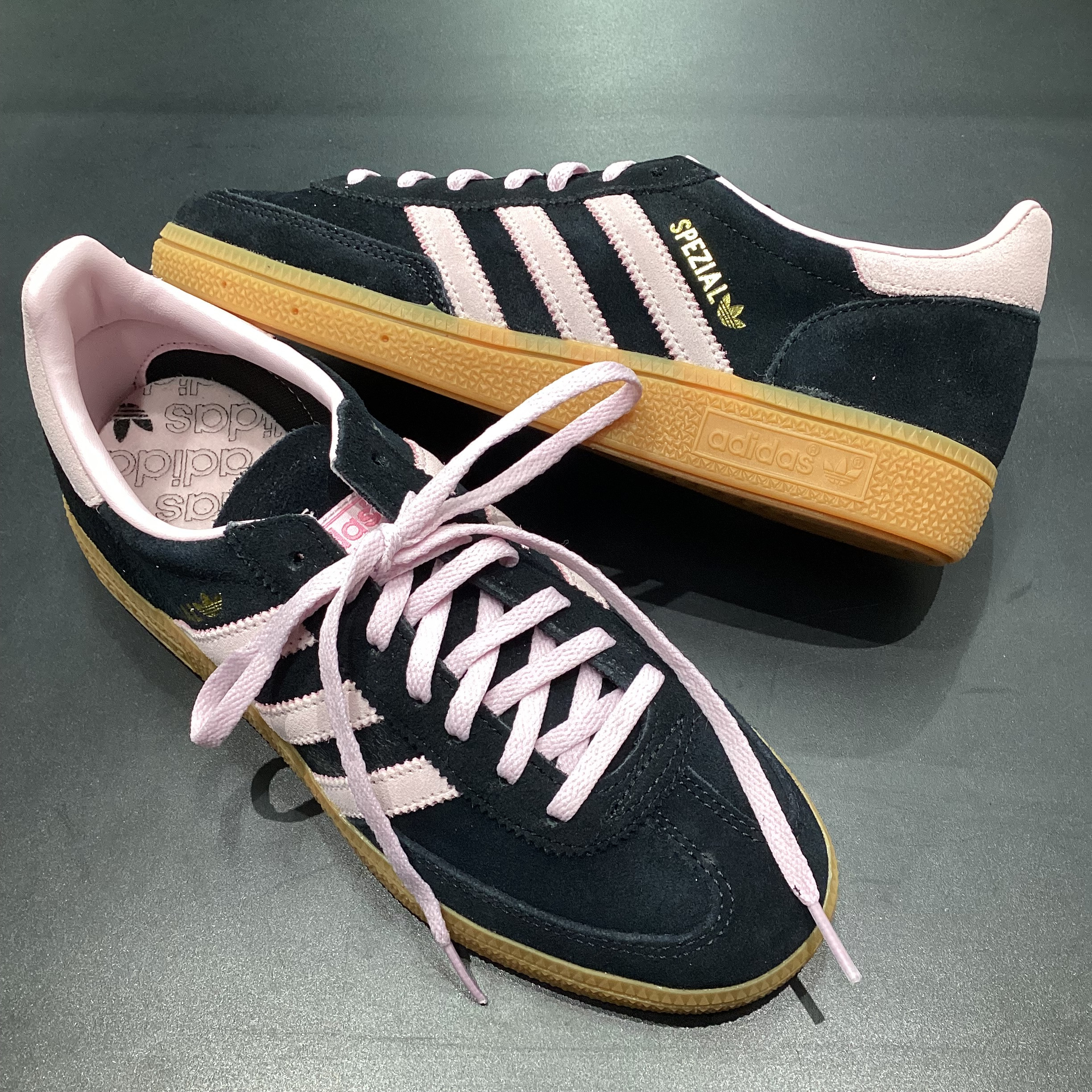 【adidas Originals】HANDBALL SPEZIAL¥15,950-Colour : クリアピンクSize : 23.0~25.0cmModel number:NIS86 IE58971979年にハンドボール用のシューズとして登場したモデル。その耐久性とデザイン性の高さからファッションアイテムとしても人気を集める一足です。シンプルな黒をベースに、鮮やかなピンクのアクセントが効いたデザインが魅力です。どんなコーディネートにも合わせやすいのはもちろん、ピンクがポイントになって、シンプルな服装にも一気におしゃれ感をプラスします。さらに、履き心地にもこだわり。クッション性抜群で足に優しく、長時間の歩行でも疲れにくい設計です。アクティブなライフスタイルを送る方にもぴったり!シーズンを問わず使えるこのシューズ、春から冬までオールシーズン活躍します。どんなシーンにもフィットする汎用性と、流行を意識したデザインが魅力的な一足。ぜひ店頭にてご覧くださいませ!
