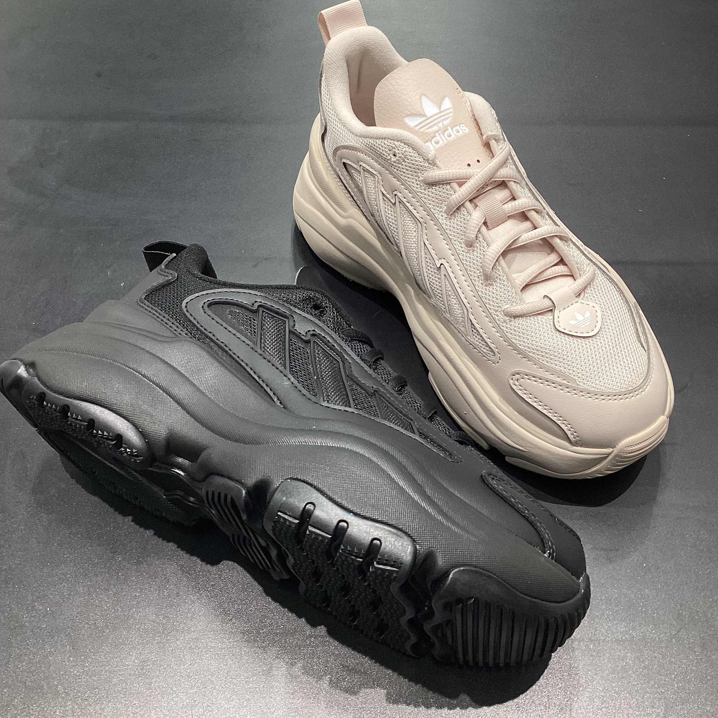 スタッフオススメ商品のご案内です。【adidas Originals】OZGAIA¥12,100-Colour : コアブラック/パテモーブSize : 23.0~25.0メッシュと合成皮革アッパーに、がっしりしたワンピース構造のラバーアウトソールを合わせ、シグネチャーのスリーストライプスと、モダンなフォルムのアッパーが特徴の一足。なんといっても、足元に圧倒的な存在感を生むボリュームたっぷりのソールが魅力的。流れるようなラインを描くアッパーと組み合わさり、ストリートにもアクティブシーンにも映えます。軽量かつ弾むような履き心地を実現するクッションにより、見た目のインパクトとは裏腹に、驚くほど快適なんです。長時間の歩行でもストレスを感じにくく、普段使いにも最適です。トレンド感がありながらモードな雰囲気も漂うオズガイアは、足元ひとつでコーデをアップデートしてくれる存在。“普通じゃ物足りない”人にこそ選んでほしい一足です。ぜひ当店にてご覧くださいませ。