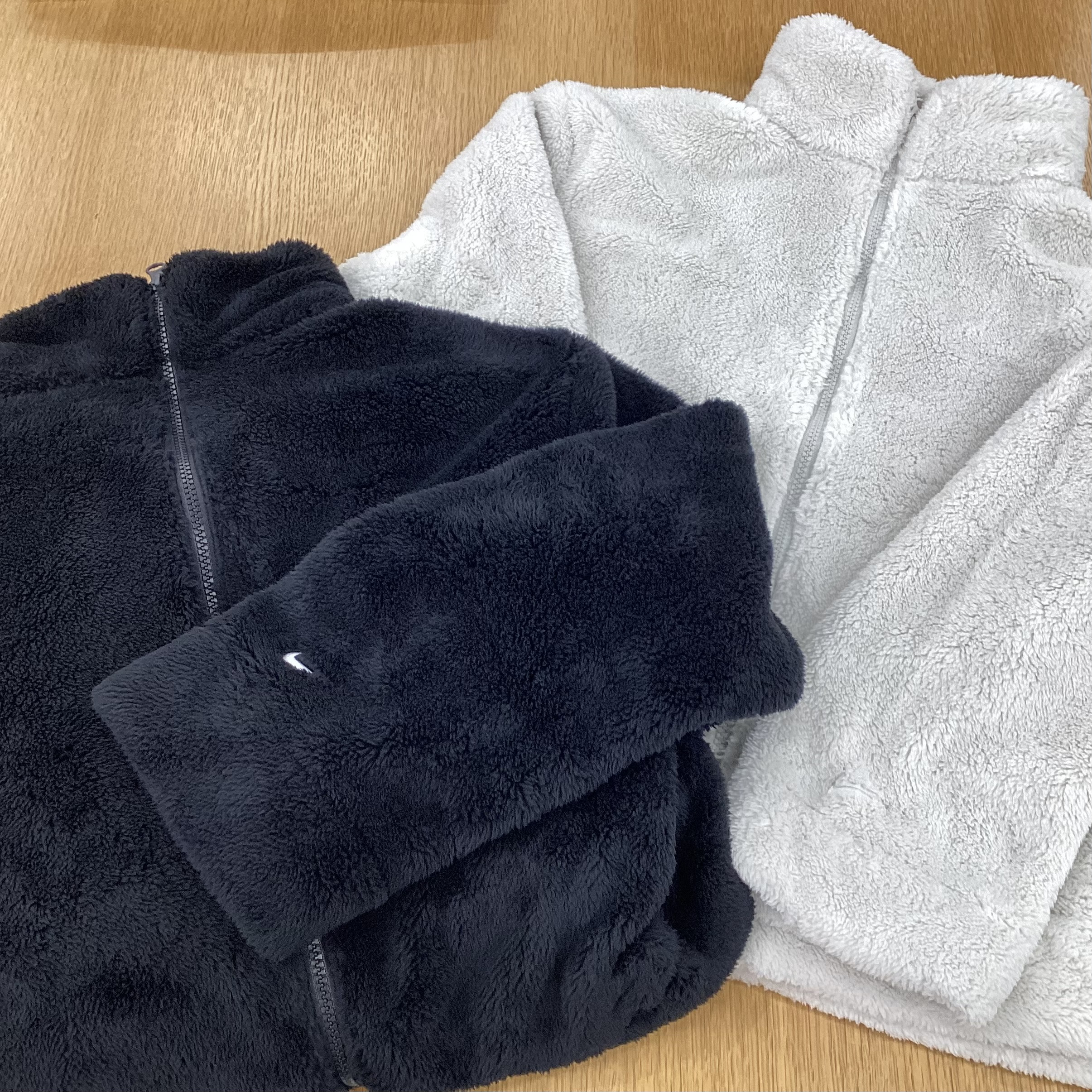 【NIKE】W ESS SHERPA JKT¥13,640-Color :LTBONE/BLACKSize : M/Lテクスチャード加工のフリースとゆったりとしたフィット感を組み合わせた、着心地の良いジャケットです。ジャケット一枚でも暖かいのはもちろんの事、寒い冬でも安心して着込めるゆとりのあるデザインで、外側内側、全てもこもこで、見た目も可愛らしい印象を与えます。着ぶくれしやすい見た目ですが、裾に一段縫い目があり、防止できます。左手の袖口に小さくNIKEのロゴが刺繡されており、可愛いつくりとなっております。ぜひ店頭にてご覧くださいませ!