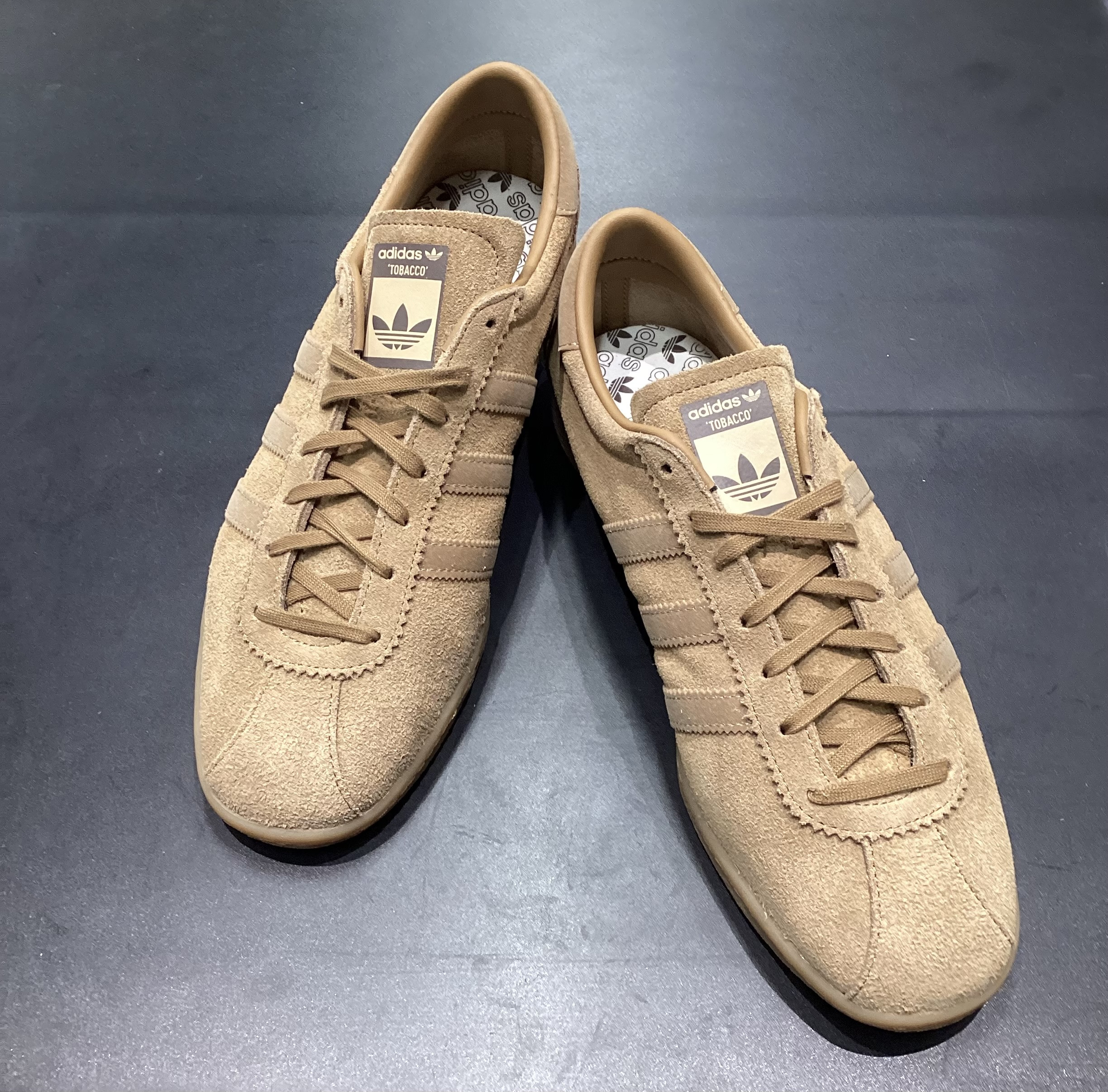 新商品入荷いたしました。【adidas Originals】TOBACCO¥15,400-Colour : ブラウンデザートSize : 25.5~28.0cmModel number:NQX94 JP9651快適な履き心地が続くようデザインされたデイリースニーカー。カジュアルで快適な履き心地、流行に左右されない滑らかなレザーアッパーを使用した一足。今回は、温かみのあるブラウンを基調とした新作。しなやかなレザーアッパーが上質な印象を与え、落ち着いたワントーンのカラーリングが、大人のカジュアルスタイルにぴったり。サイドにはアイコニックな3ストライプを同系色で配置し、主張しすぎない絶妙なバランスに仕上がっており、柔らかなライニングとしっかりとしたアウトソールで、日常使いに快適な履き心地を提供します。シンプルだからこそ際立つ、クラシックデザインの魅力。デニムやチノパンはもちろん、カラーコーデにも自然に馴染む万能な一足です。ぜひ店頭にて、この風合いと履き心地をお確かめください。
