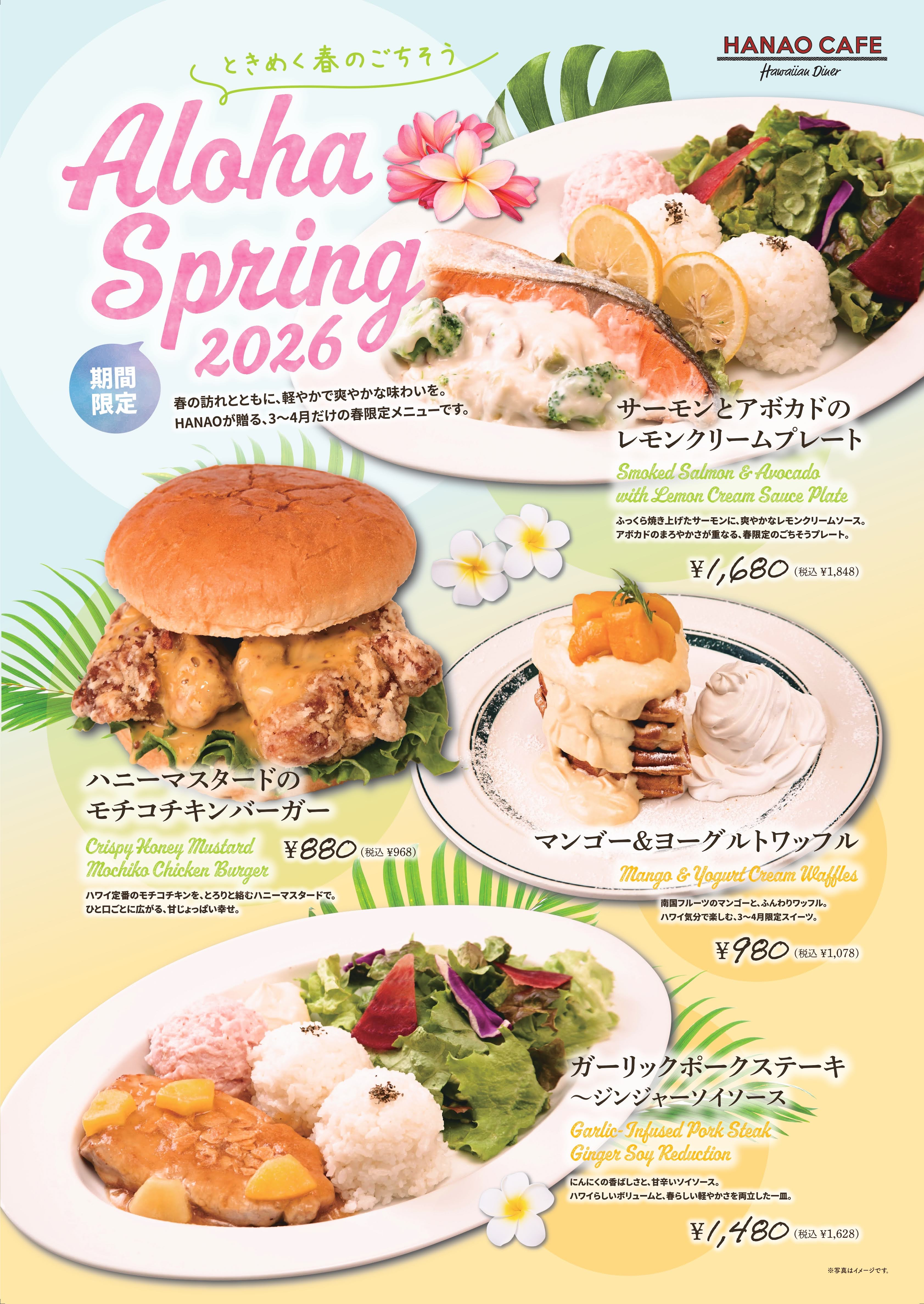 いつもご来店頂きありがとうございます。HANAO CAFE期間限定メニューのお知らせです。4月30日までの期間