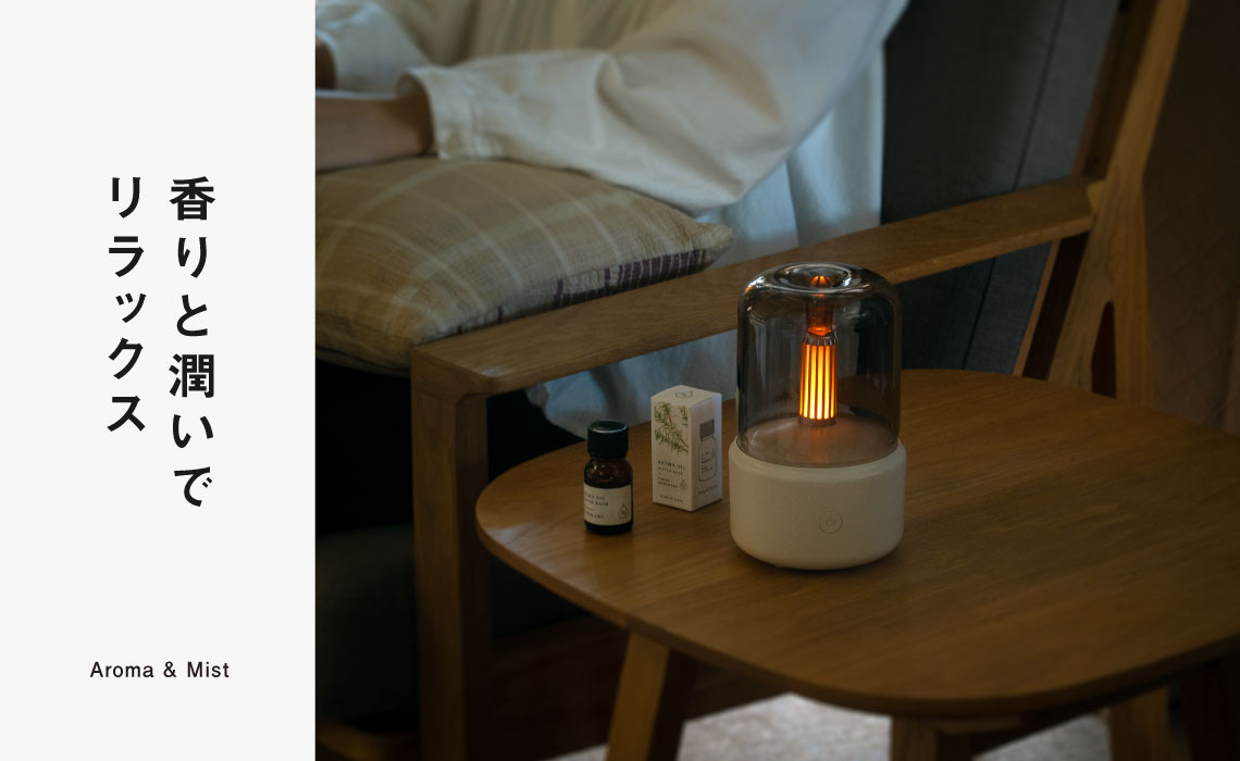 乾燥しやすい冬は、アロマと加湿器のセットがおすすめです。ご自宅用はもちろん、癒しを届ける冬のギフトとしてもいかがですか?