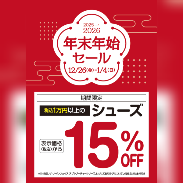 【年末年始】シューズ15%OFF